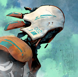 This was a good group of nine for me. I went from following prompts ("portal" for number 55 and "taunt" for 56 (how could I NOT go with a classic Monte Python bit)) - to having an "AH-HA!" moment with a loose water color experiment for 57, to a green and red bot that eventually made it to the cover of Imagine FX magazine (number 61).
